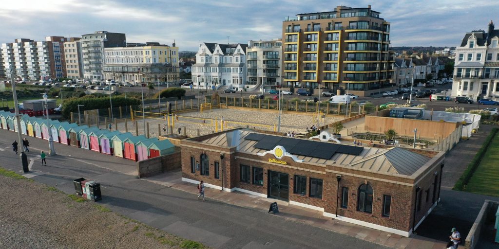 The Yellowave Hove Cafe is in a beautifully renovated locally listed building, overlooking both the sea and the beach sports areas. There is indoor seating as well as an outdoor deck with a free sand pit for little ones to play in.